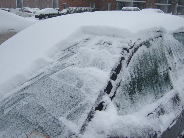 費了一陣工夫在清理玻璃上的雪